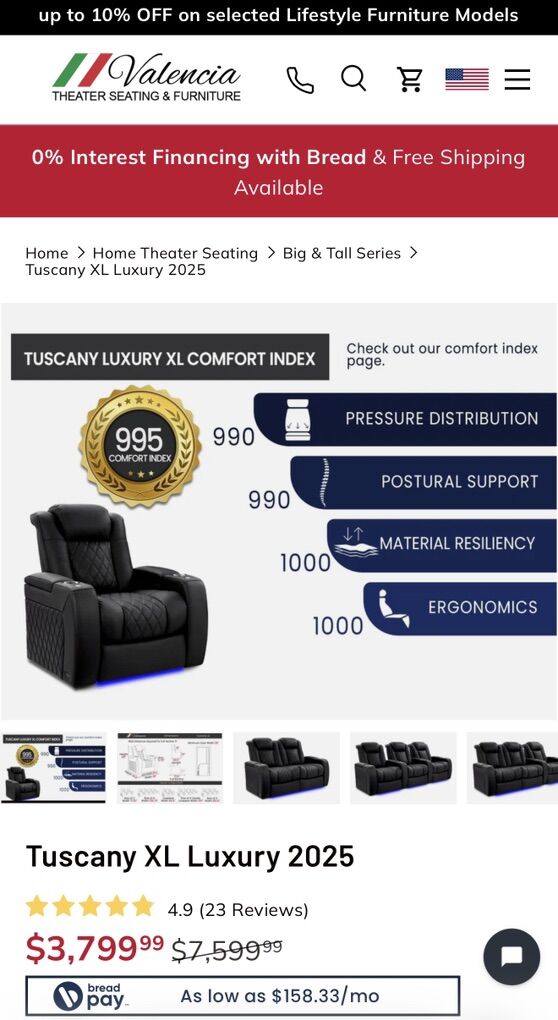 This is a custom made XL theater recliner with fully adjustable power headrest and lumbar. Power recliner 100% premium brown leather front, sides, and back. This XL recliner is specifically made for extra tall large people. We placed the custom order in August and received it in mid November. It has only been sat in a few times. My husband decided it does not work with the furniture lay out. We paid $2,470 and we are asking $1,800. Our loss is your gain.