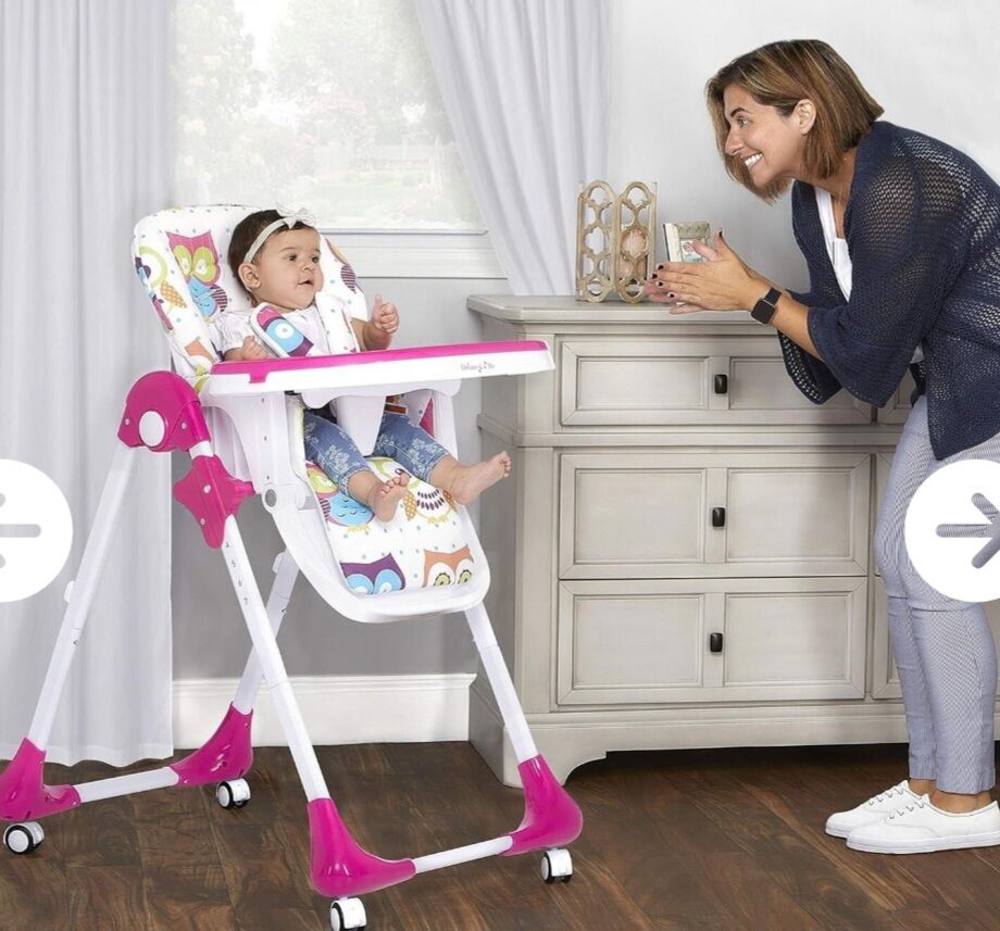 PayPalNEW Dream On Me Jazz Highchair. 7 positions adjustable height, 3 position adjustable seat recline. 3 position adjustable front tray and tray insert - dishwasher safe. 3 position adjustable footrest. 5 point safety harness, shoulder belt cover and T crotch cover included. 4 wheels with stopper included. Assembly required. Retail $98. Draper.