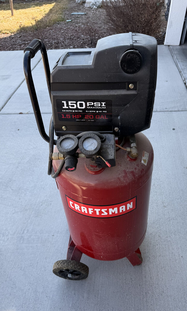 VenmoLighly used Craftsman air compressor. Dusty from sitting unused in my garage. I think I used it twice. Need to make room in my garage for a larger car. Price firm.