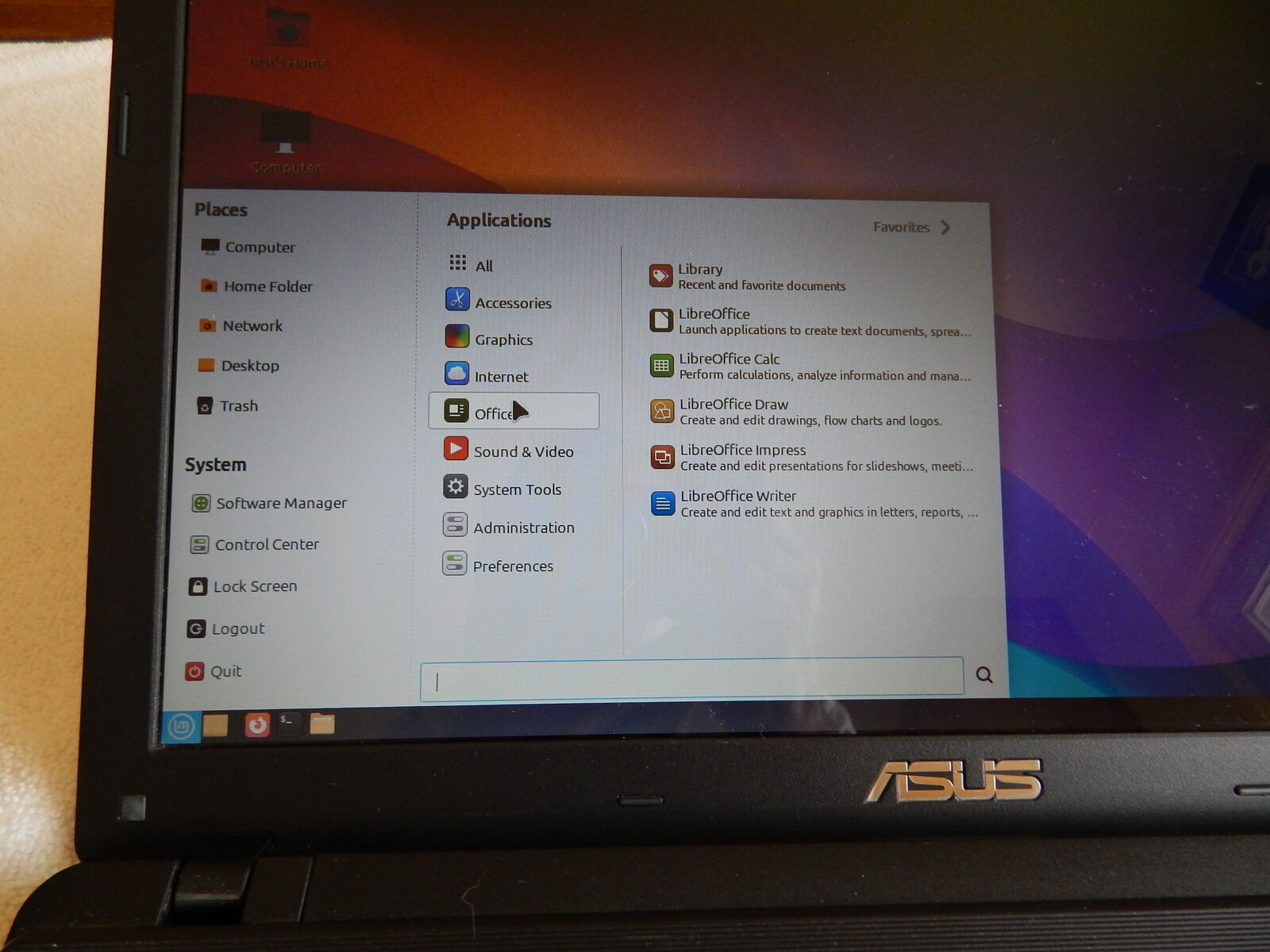OS: Linux Mint 22.3 Zara with full office suite (LibreOffice Calc, Draw, Impress, Writer)