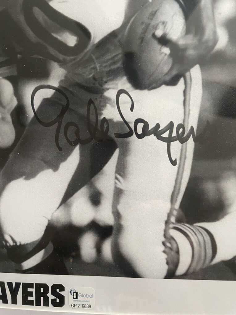 Authenticated autographed picture of Gail Sayers, number 40, Chicago Bears. Photo with frame measure 15“ x 12“.