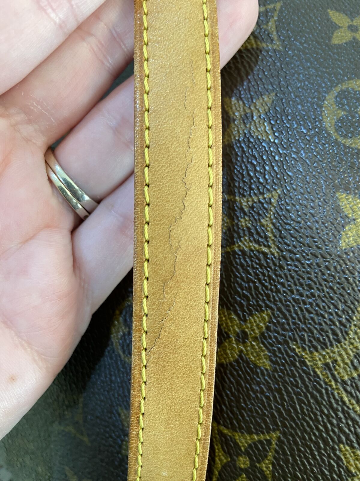 ApplePayThis bag is in great condition, clean orange suede interior, clean mongram canvas and no smell. Corners and vachetta look great. Only call out is minor cracking on the strap, does not go through to the other side as pictured. Could use some conditioning. Will come with COA and dust bag.