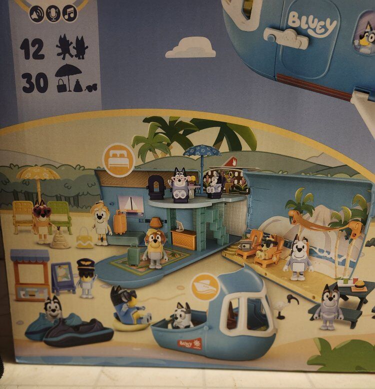 Included in the set: 1 x Transforming Playset – plane opens into a two‑level resort and converts into a boat 12 x Figures – characters from the Bluey universe ~30 Accessories – luggage, furniture and play items Over 25 Sounds & Phrases – interactive audio features built into the playset This is a great deal compared to full retail or online prices. Asking $55 Local pickup: Layton