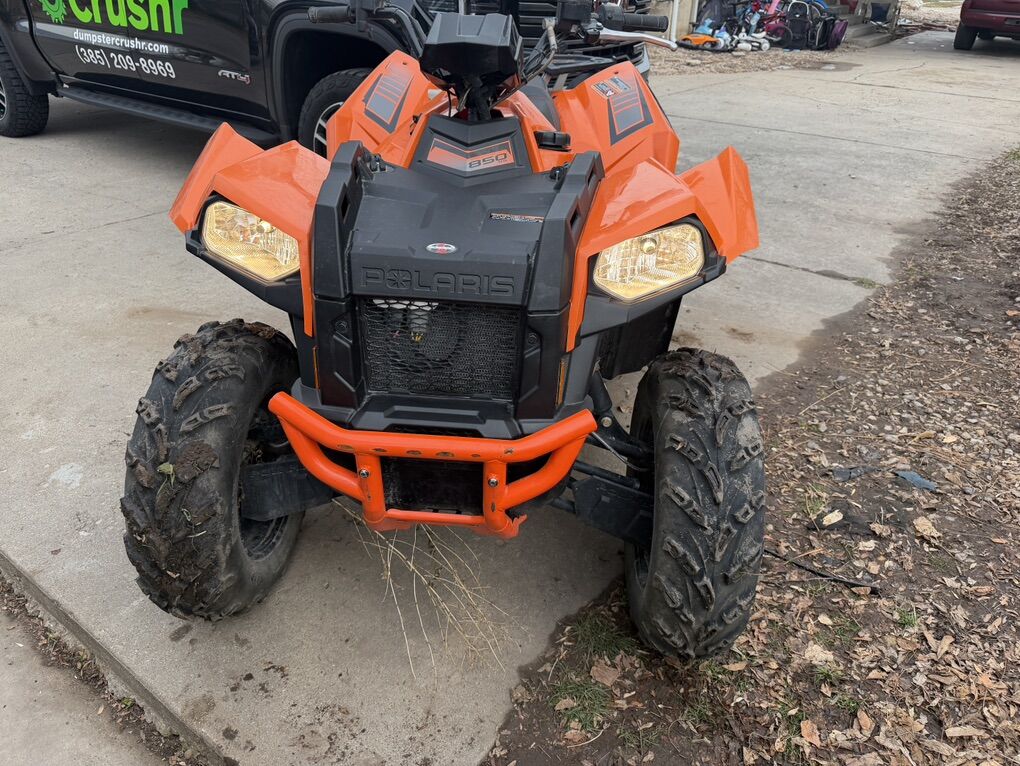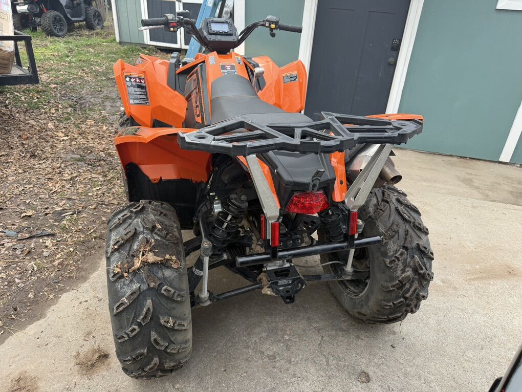 2022 Polaris Scrambler 850—a performance 4x4 ATV with a fuel-injected 850cc twin, automatic PVT transmission, selectable 2WD/4WD, and long-travel independent suspension for confident trail control. Key Highlights Engine & Driveline: 850cc liquid-cooled ProStar twin (EFI); Automatic PVT (P/R/N/L/H); selectable 2WD / 4WD Suspension: Independent dual A-arm front (~9.0 travel) / IRS rear (~10.3 travel) Brakes: Hydraulic discs front & rear Wheels & Tires: 14 cast-aluminum wheels with 26 × 8-14 (front) and 26 × 10-14 (rear) tires Utility: Standard 1.25 receiver hitch; 1,500-lb towing capacity Rider Focus: Sport chassis with 48 stance, generous ground clearance, and digital instrumentation Specifications Displacement: 850 cc (EFI) Fuel Capacity: 5.25 gal Ground Clearance: 11.5 Dimensions (L × W × H): 82.3 × 48.0 × 48.4 Wheelbase: 53.0 Dry Weight: ~736 lb Towing Capacity: 1,500 lb Sport-tuned suspension, selectable 4×4 traction, and Polaris durability—the Scrambler 850 is ready for aggressive trail rides and all-day adventures.