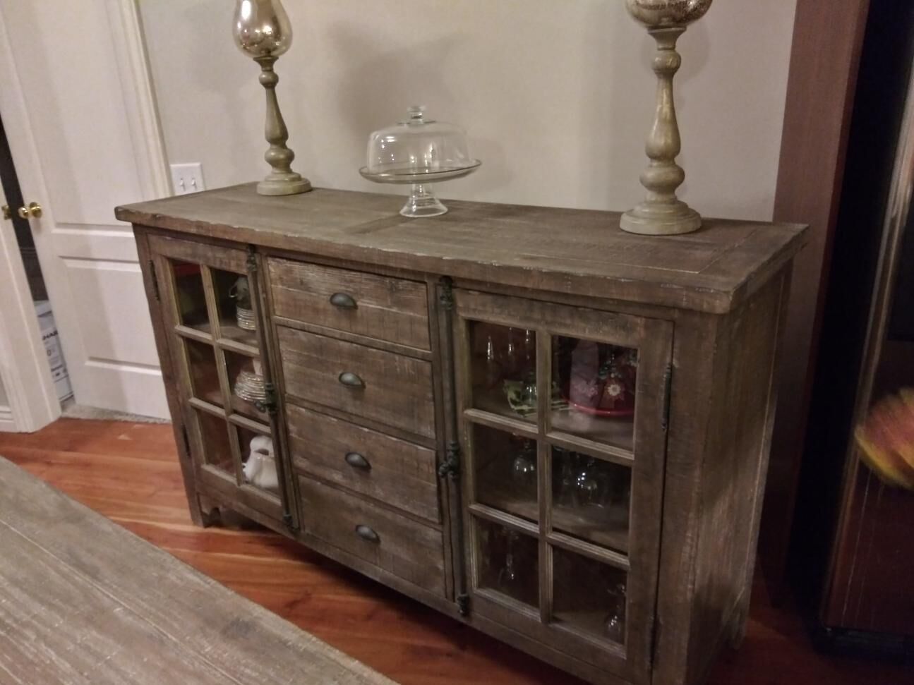 French country look with a rustic flair, sandstone finish. featuring hand-distressed detailing. (Purchased New from RC Willey)