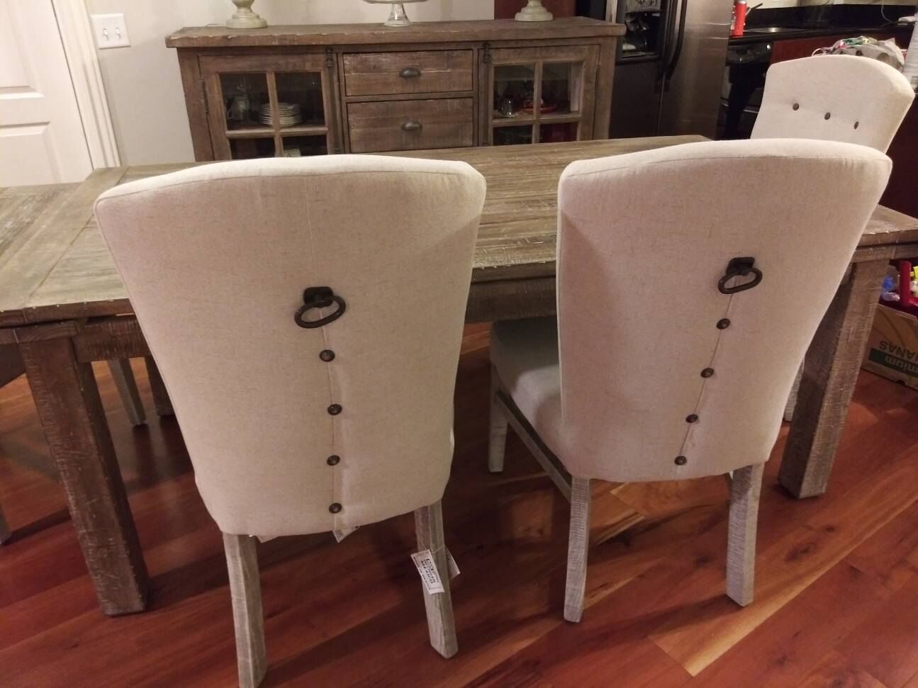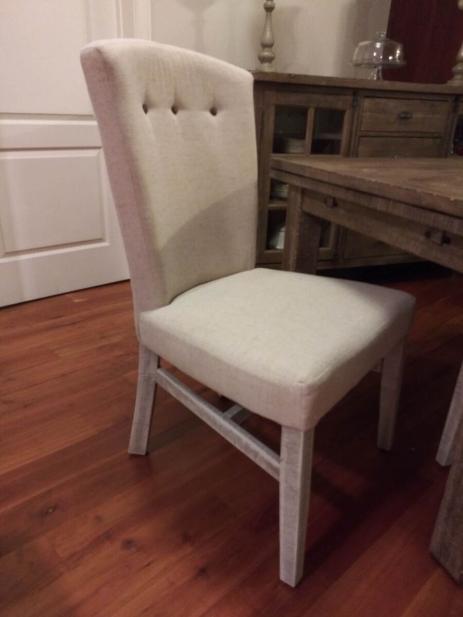 *8 Bonanza High-back Linen fabric chairs with hand pulls on back. These are some VERY comfortable chairs!