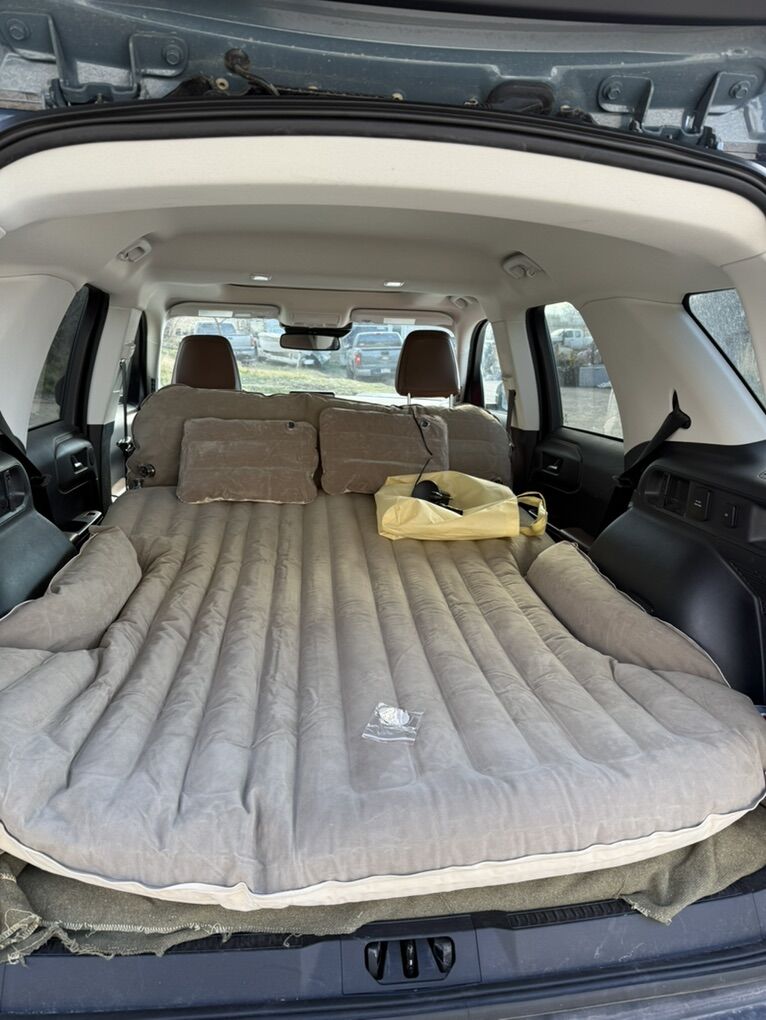VenmoAn inflatable air mattress for car (Bronco sport or similar) w/pump. This air mattress has only been used once. The headrests are separate from the mattress, and each side of the mattress is separate from each other. It also comes with 2 patches, and two separate pillows as shown in the pictures.