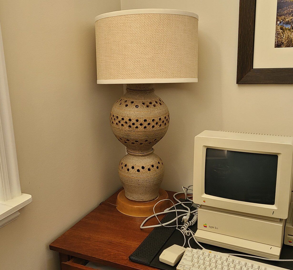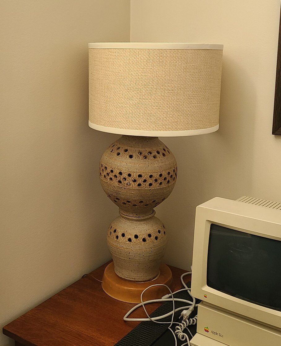 Vintage Georges Pelletier gourd lamp. The lamp needs a mew metal light bulb cage yo hold the lampshade.