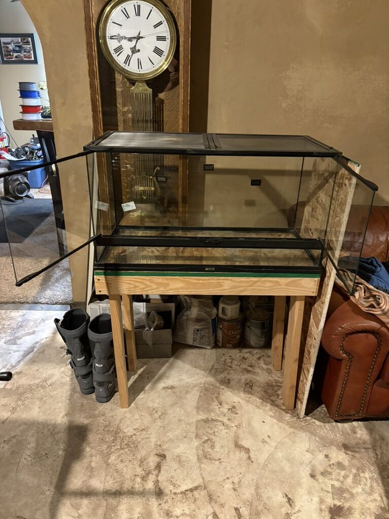 Venmo15 inch uvb lightbar Heat lamp 1humud hide 3warm hides Net feature 1plant Calcium without d3 Automatic on off timer for uvb lamp heat lamp and heat bed 1 30 gallon heat bed Zoo med 30 gallon enclosure Heat and humidity displays Coconut humidity wood chips 1water dish 1 food dish Table for enclosure