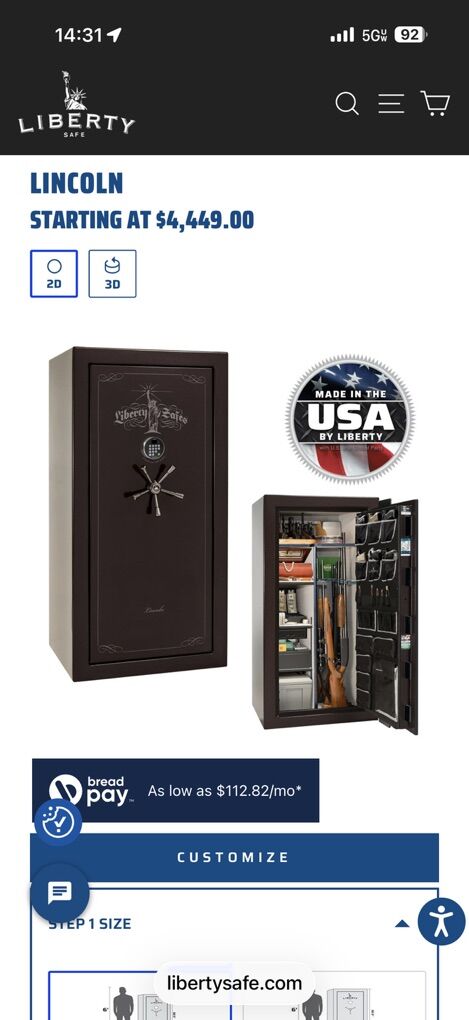 ApplePayUsed Liberty Lincoln 25 safe with digital keypad, upgraded interior light, dehumidifier, storage box and door organizer. Has a couple scratches on top due to move. I don’t gave the space for it. $4,900 as outfitted.