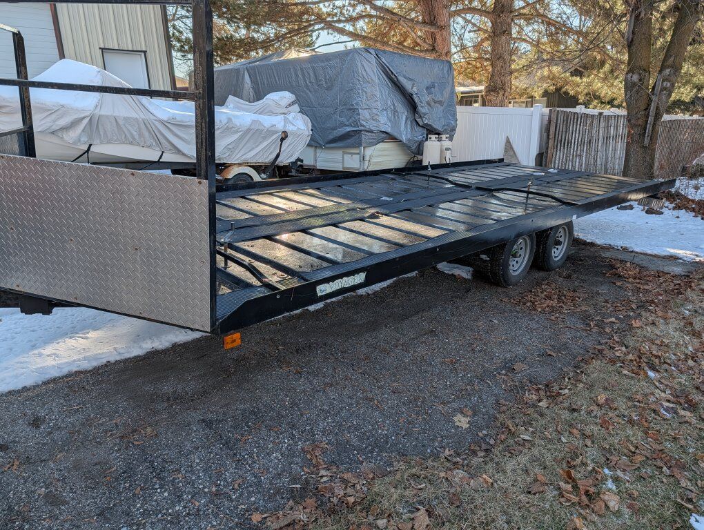 good clean trailer. only used a handful of times the past few years. minimal rust. 22 deck length + V and tounge.