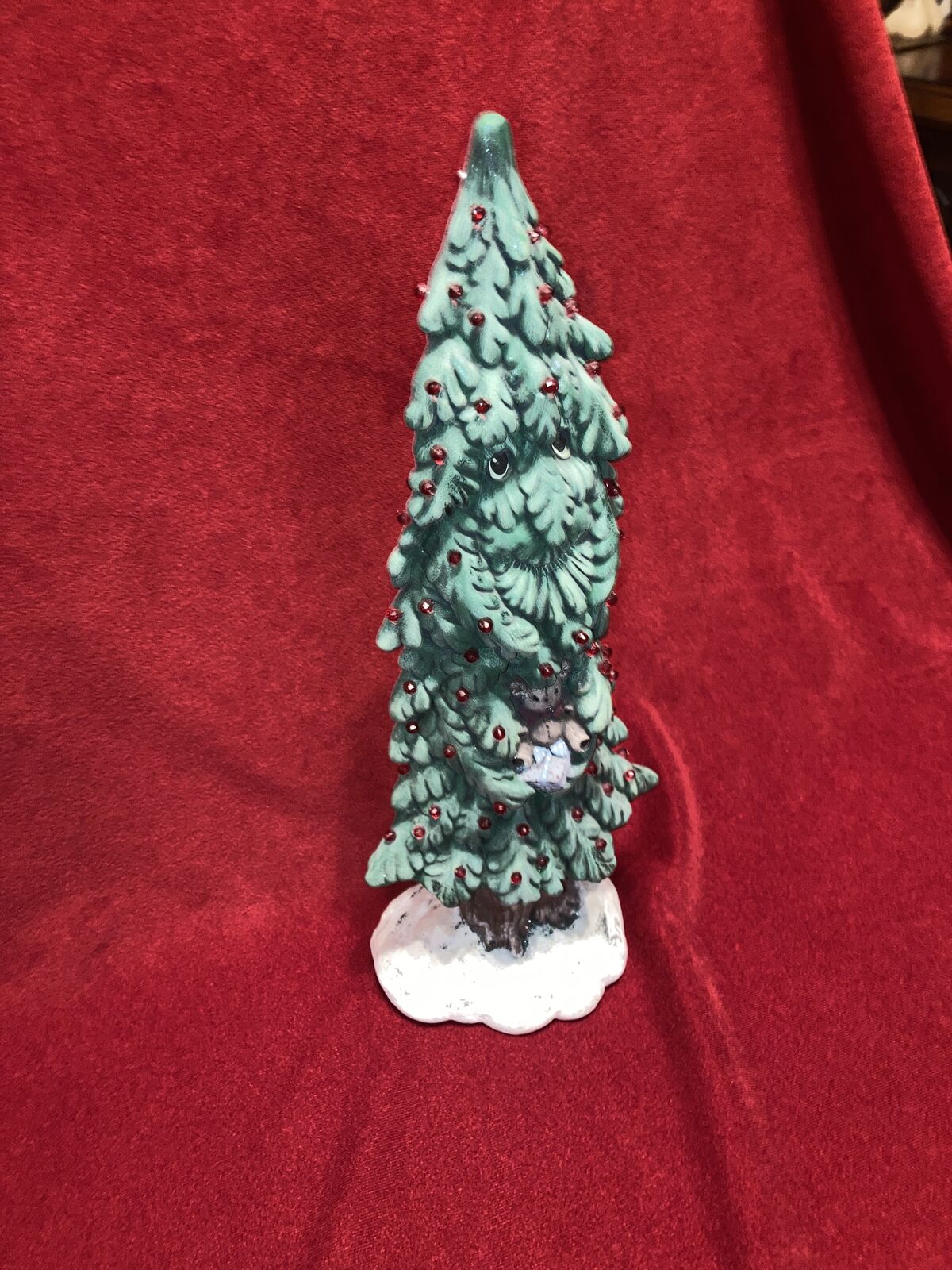 Hello I have a Vintage Living Face Ceramic Christmas Tree With Teddy Bear & Ornaments Very Unique Beautiful Tree Great Deal for Collectors Video as well 14 Inch