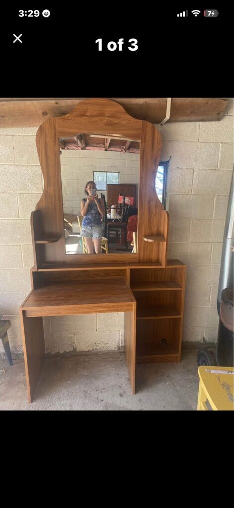 VenmoHardly used because it’s too big for my room. Beautiful wooden vanity!!! Has large mirror and shelves. It can be split into two pieces, which makes it easier to move. $180.00 OBO