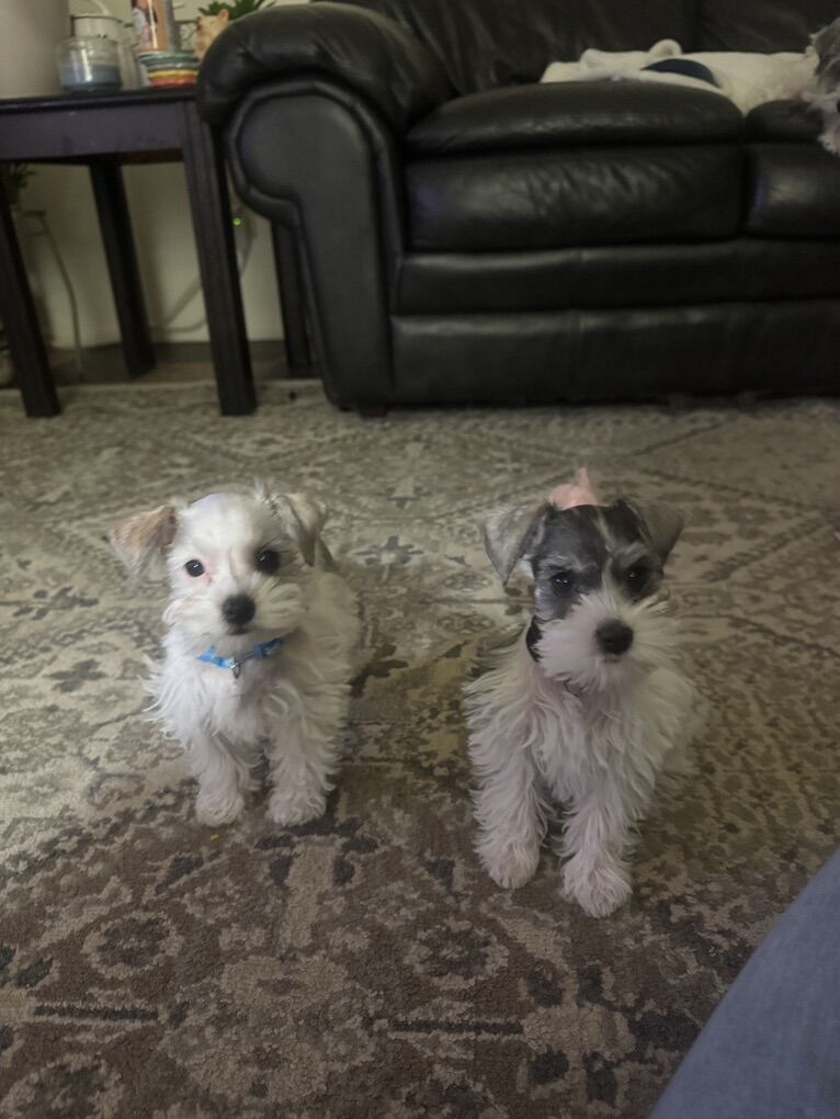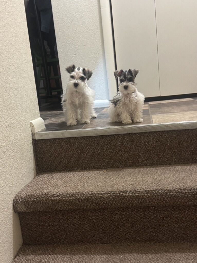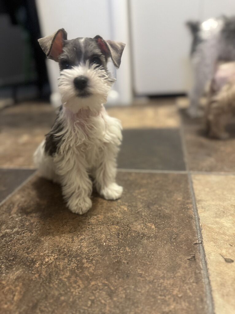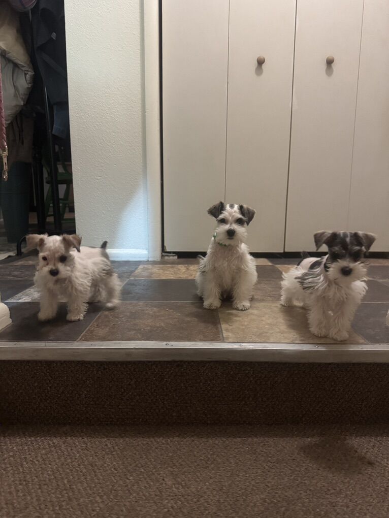 Venmo3 male miniature schnauzer puppies. 9 weeks old and ready for their new homes. The boys got their first hair cut!! We are down to 3 boys, These boys have the best lil personalities. Mom weighs 10 lbs and dad weighs 8 lbs. They should be 10lbs or smaller. Asking $800 call or text for any information.All have had first set of shots, dewormed, they have had their tails docked and dew claws removed. 4356099011