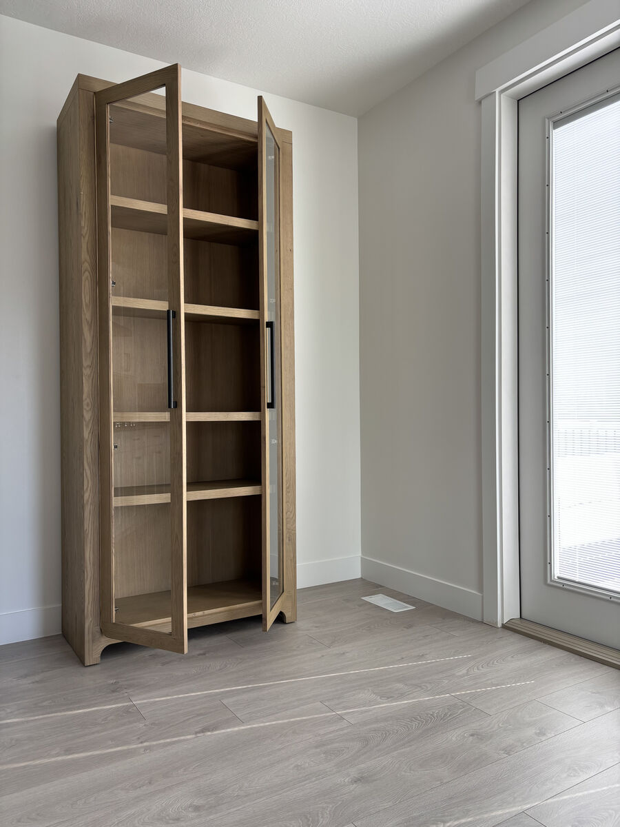VenmoElegant Restoration Hardware Davos glass cabinet in solid white oak. Clean modern lines with generous display space and warm natural grain, perfect for a living room, dining room, or office that needs a refined focal piece. Solid white oak construction offers durability and refined finish elevated contemporary and classic interiors alike.