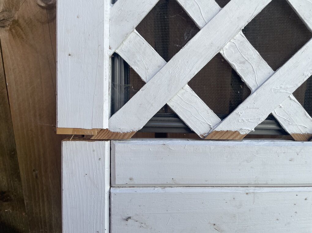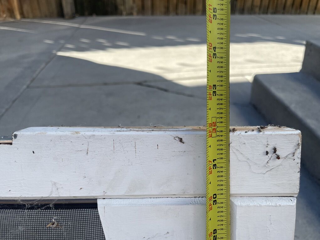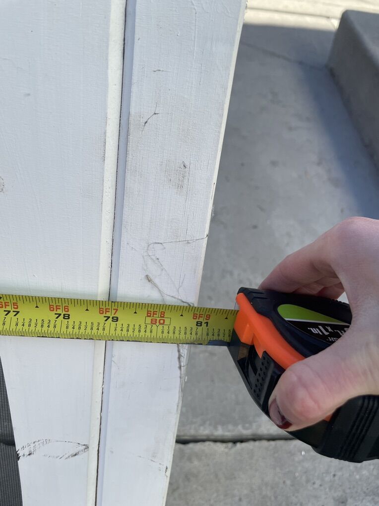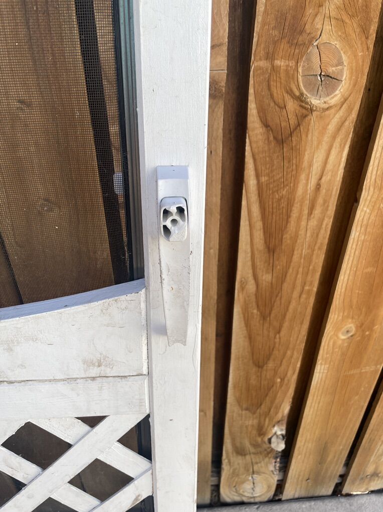 Free screen door for repair or parts. Has a crack in the wood on one side, a small hole in the screen, and the handle button cover is missing. Measures 32 x 81. Pick up only. Located in Sugarhouse near Dancing Cranes.