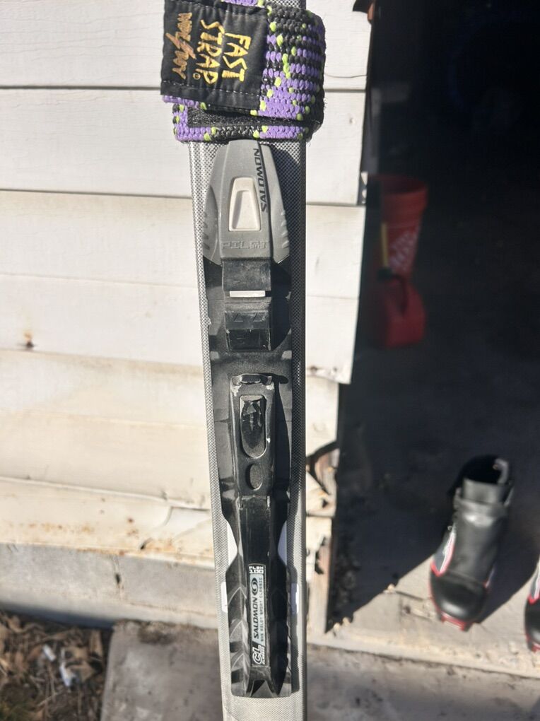 Bindings: Salomon SNS Pilot (Double-bar system). These provide much better control and lateral stability than older single-bar bindings.
