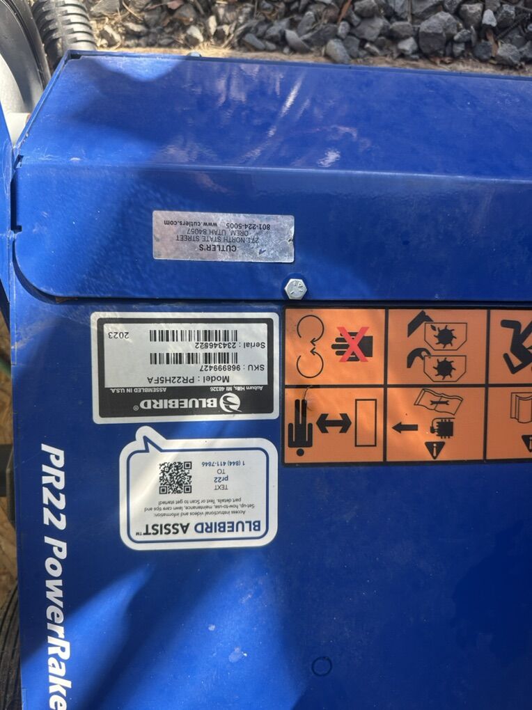 2023 BlueBird Powerrake $1800 (Honda Gx)\
