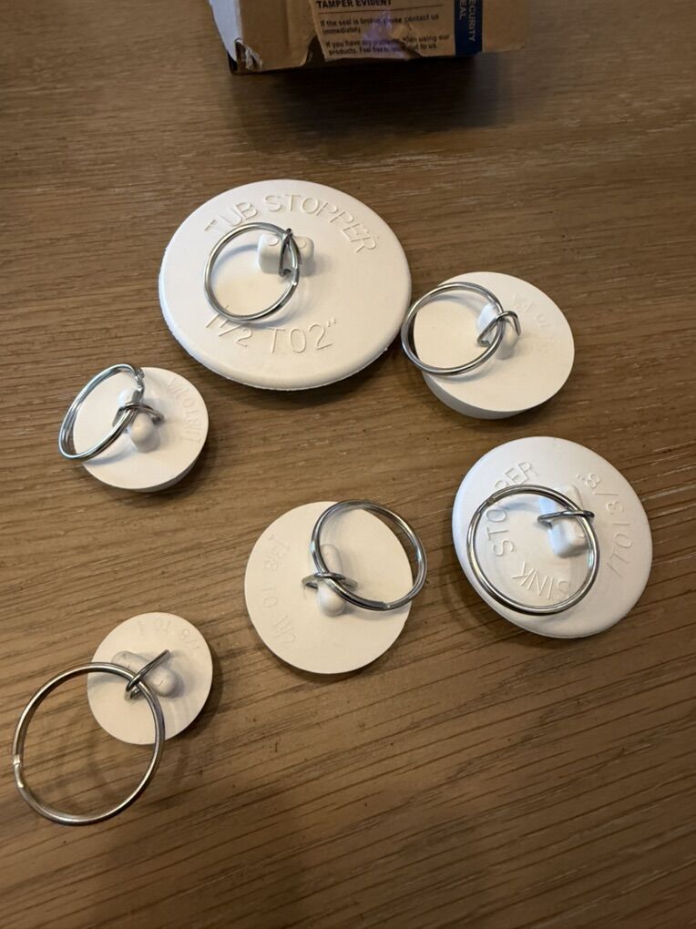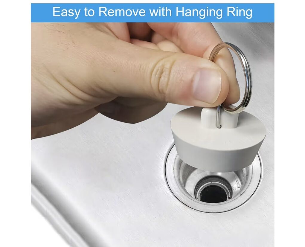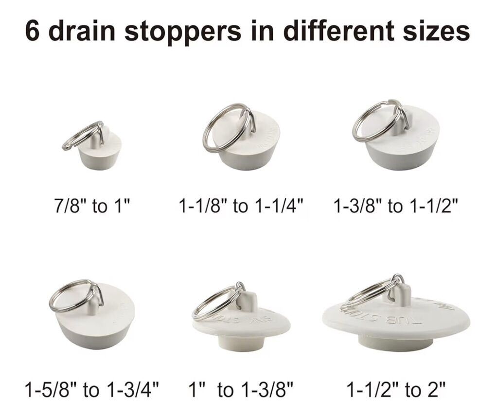 6 Pieces Drain Stopper, Rubber Kitchen Sink Drain, Sink Stopper Drain Plug with Pull Ring for Kitchen, Bathtub, Bathroom and Laundry Sink in 6 Different Sizes, White