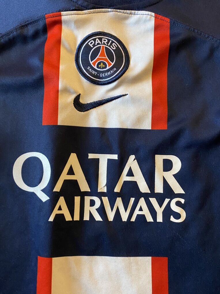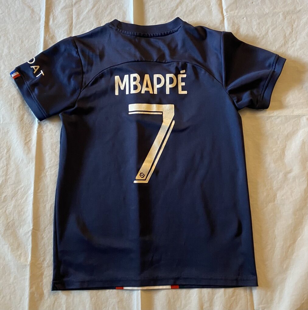 ApplePayThe product is a Kylian Mbappé Nike Paris Saint-Germain 2022/23 home soccer jersey for youth in size 24. This officially licensed jersey in blue features Mbappé's name and the Paris Saint-Germain team logo, making it a must-have for young fans of the soccer star and the team. The jersey is designed by Nike, a reputable sports apparel brand, and is suitable for both boys and girls who support Mbappé and Paris Saint-Germain.