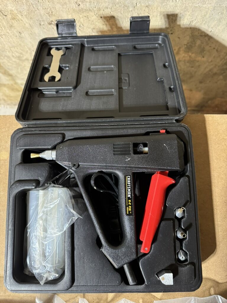 ApplePayCraftsman EZ-Fix home repair kit in original case. Includes glue gun, tips, accessories, and multiple packs of extra repair sticks (see photos). Designed for bonding, mending, sealing, caulking, and filling around the home.