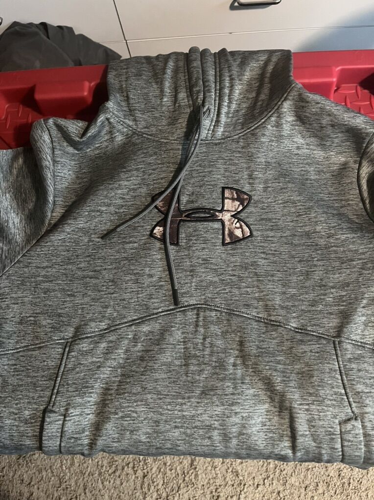 Adidas blue white and grey L $20 Grey under armour camo M $25 Enthuzst grey “blowin money” L $30 Columbia grey logo L $20 Blue Carhartt force M $30 Green Carhartt rain defender M $40 Black dirty hands clean money L $40 Brown cabelas buck M $20 Black under armour logo L $20 Black Carhartt logo M $30 Texas longhorn waffle pullover L $20 Grey catapillar diesel L $20