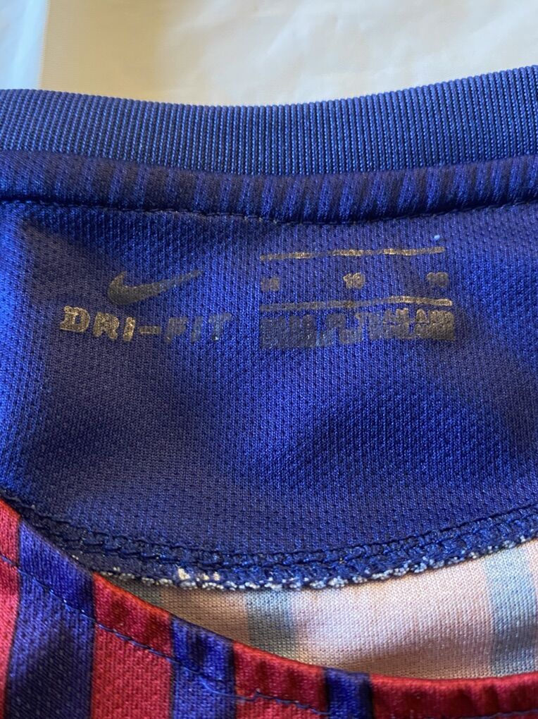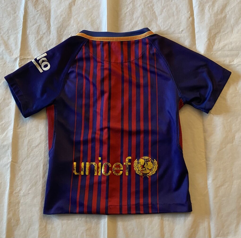 ApplePayThe Nike FC Barcelona 2017-2018 Home Soccer Jersey in size 10 is the official jersey of FC Barcelona, designed for young boys who are fans of the team. Made by Nike, this officially licensed jersey features the traditional multi-color design of the team's home uniform. Perfect for showing support for FC Barcelona on match days or during training sessions on the field, this jersey combines style and functionality for young soccer enthusiasts.