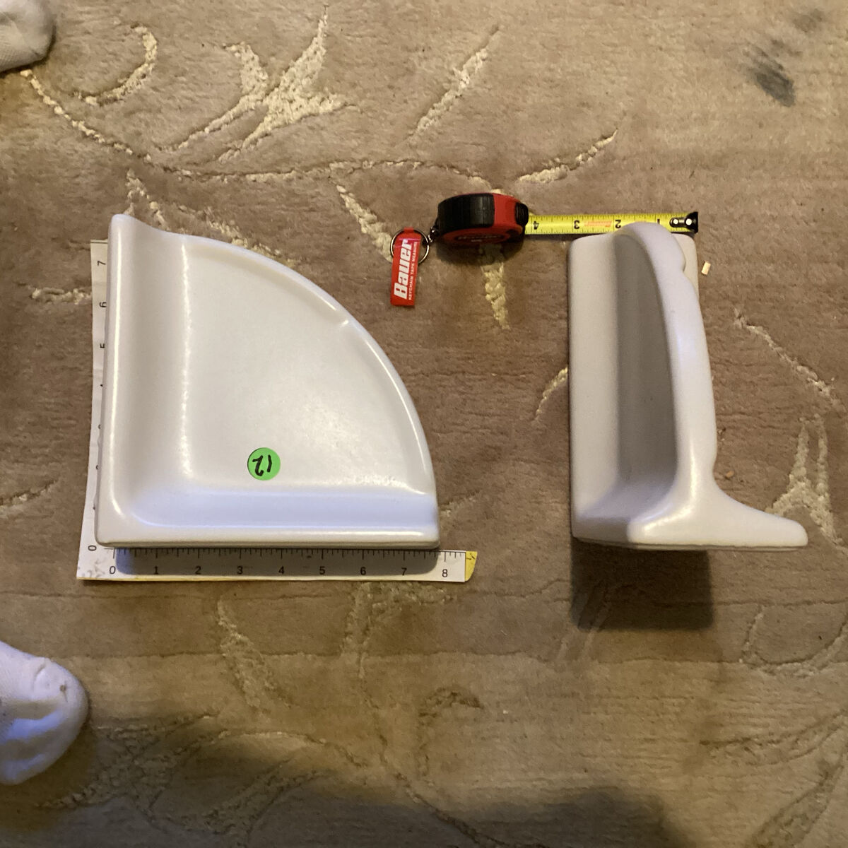 CERAMIC CORNER SHELVES. Prices vary online. I will sell for $15. 11. Matte Biscuit - 6. 7.5 x 7.5 x 3.125 12. Matte Bone - 1. Same as above