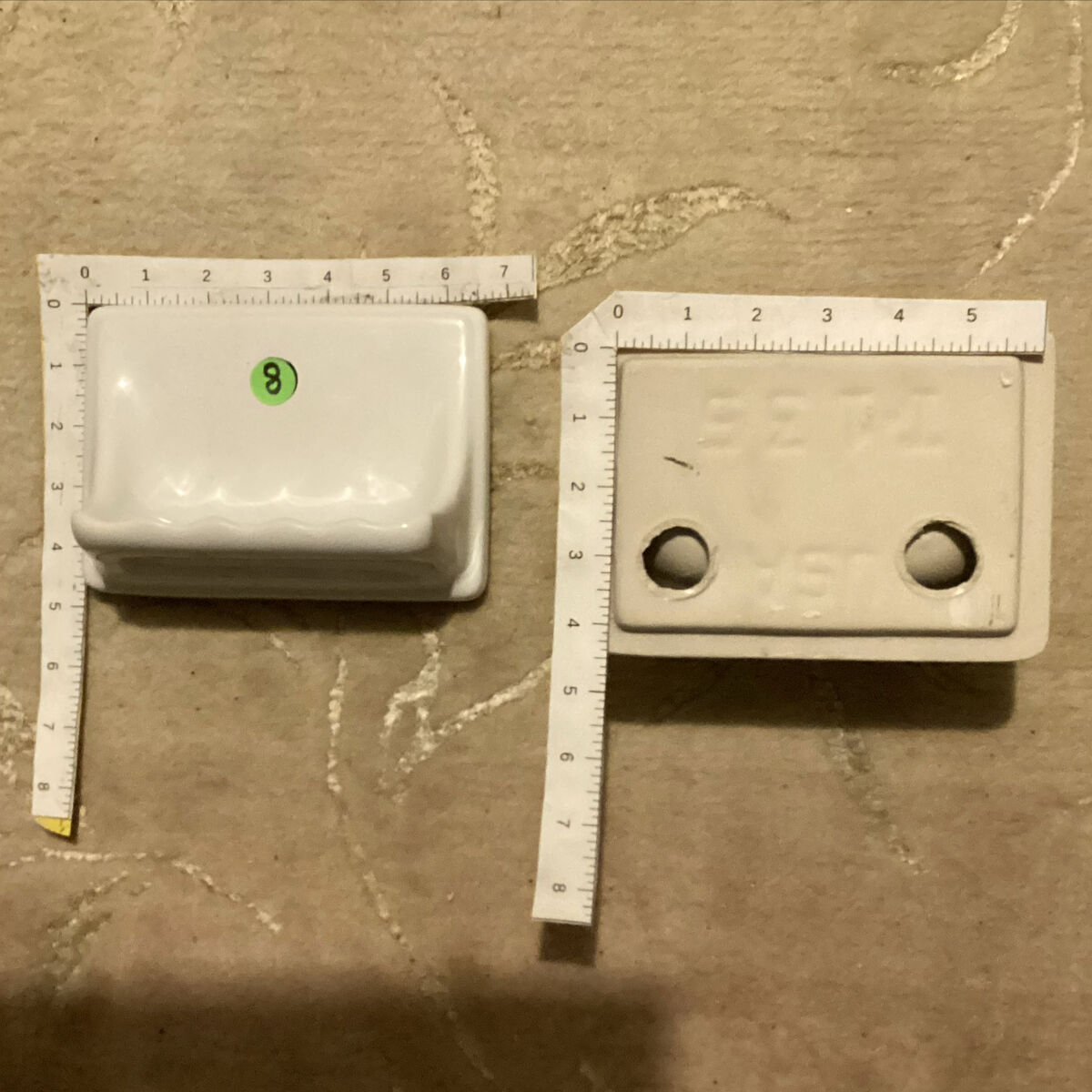 SOAP DISH WITHOUT WASHCLOTH BAR Priced online from $49.95 - $69.95. My price is $15. 8. Gloss Bone (off white) - 5. These measure 6.75 x 4.75, insert 4.75 x 4 9. Matte Biscuit - 1. Measure 6 x 5.125, Insert 4.125 x 4.125 10. Matte Bone (off white) - 37. Measure 6 x 5.125, insert 4.125 x 4.125
