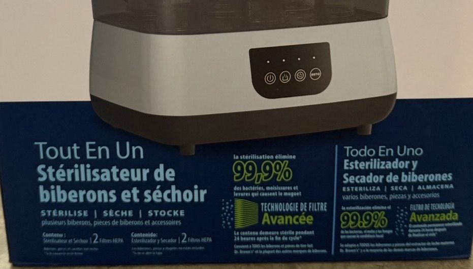Baby Bottle Sterilizer & Dryer. Sterilize up to six Narrow or Wide-Neck baby bottles at once, plus bottle accessories, breast pump parts, pacifiers, teethers, and more. ELIMINATES HARMFUL BACTERIA. Steam sterilizing eliminates 99.9% of bacteria, mold, and the yeast that causes thrush.