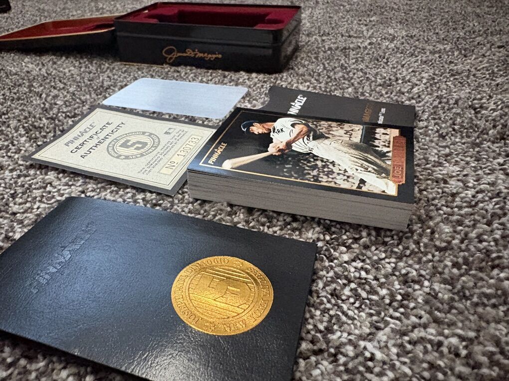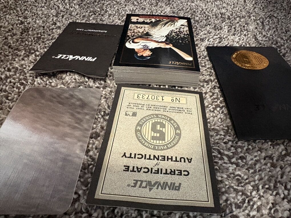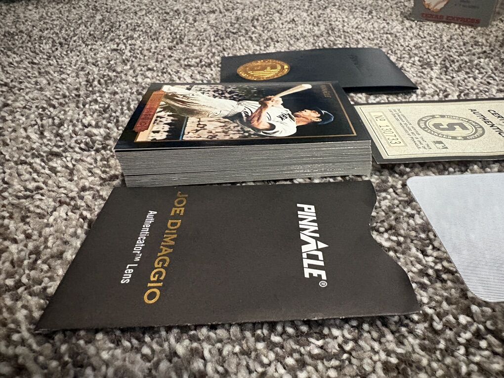 VenmoThe 1993 Pinnacle Joe Dimaggio Exclusive 30-Card Set is a limited edition sports trading card set featuring baseball legend Joe DiMaggio. This original set, manufactured by Pinnacle in the United States, includes cards made of card stock and is in near mint or better condition. The set also comes with a Certificate of Authenticity (COA) and a card authenticator, adding to its value and authenticity for collectors and fans of Major League Baseball, especially those interested in the New York Yankees. This exclusive set captures a piece of baseball history.