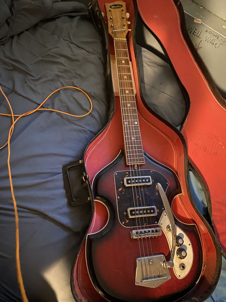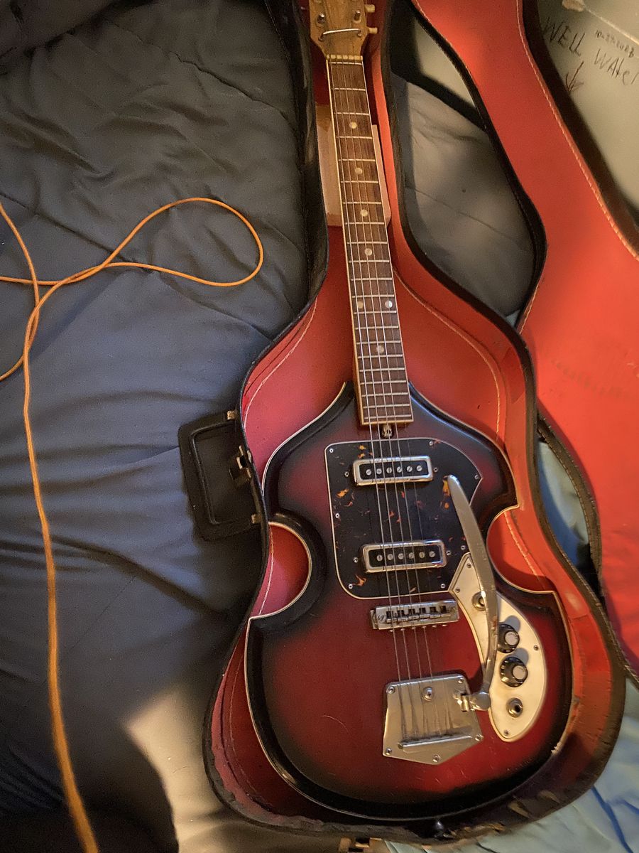 the fire burst 1 in case.It is kinda rare guitar made in Japan in the 60's vintage.It is missing 1 string but still every thing works.