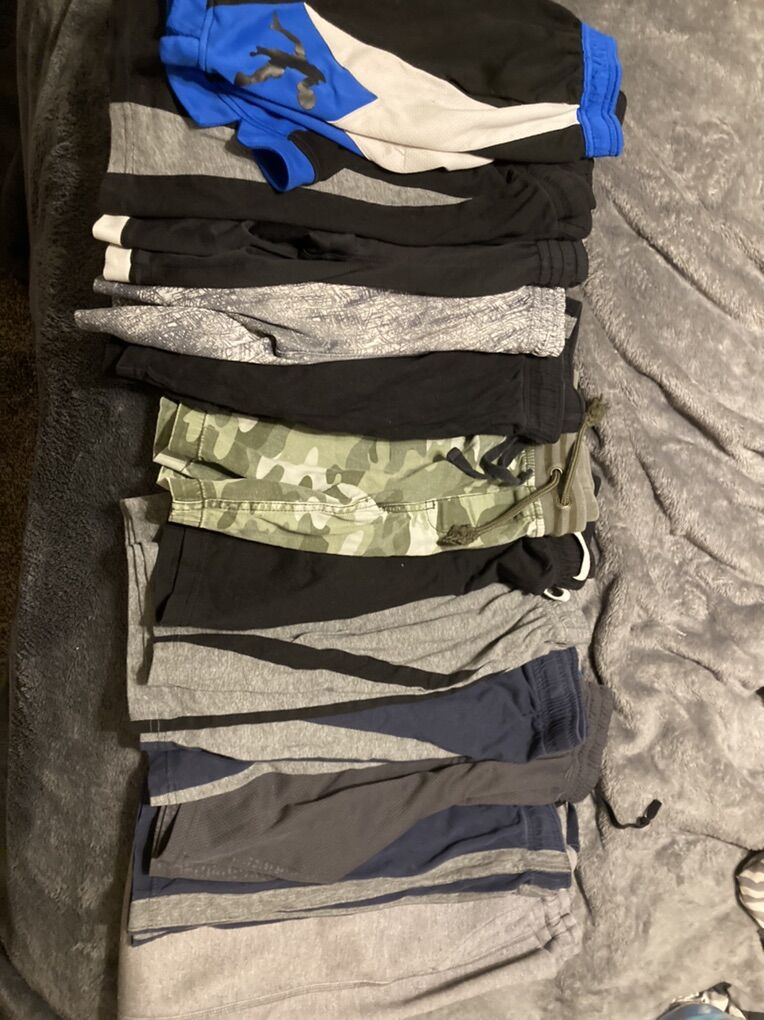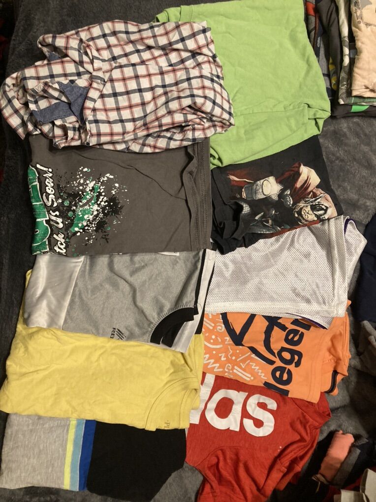20 short sleeve 20 long sleeve 11 pairs of shorts 1 pair of sweat pants (paint on them) Misc pjs