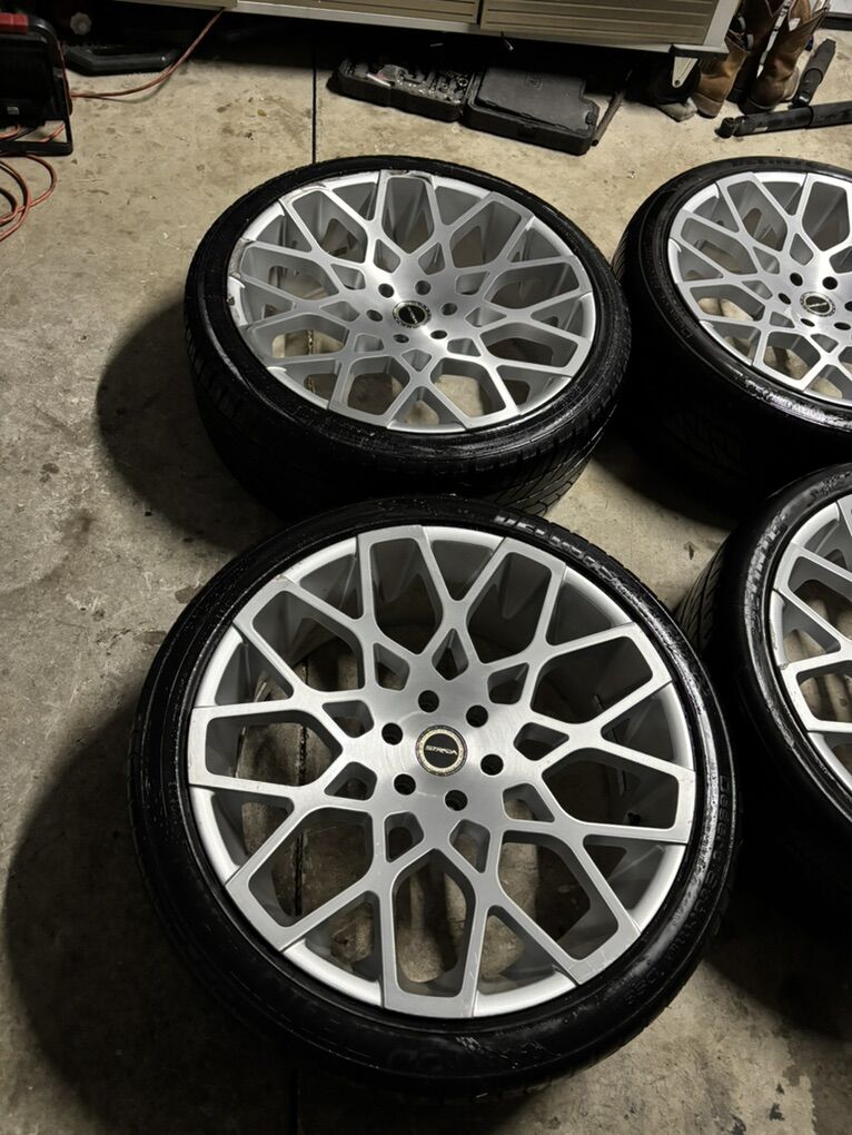 Selling these 24 inch Buca Strada wheels no bends or cracks they do have some rash one wheel has more posted a picture will need tires they still hold air asking 400$