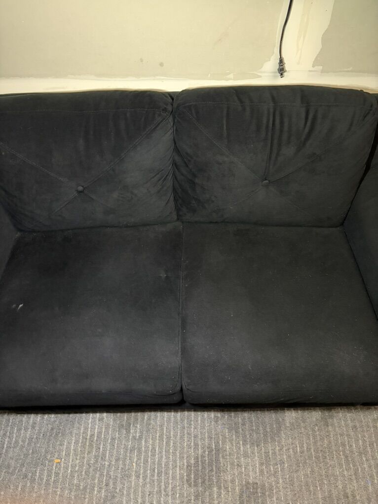 ZelleSmall black couch perfect for apartment Just recently moved it to the garage because I received a new couch and did not have space. No tears not broken If ad is still up it’s still available No delivery option