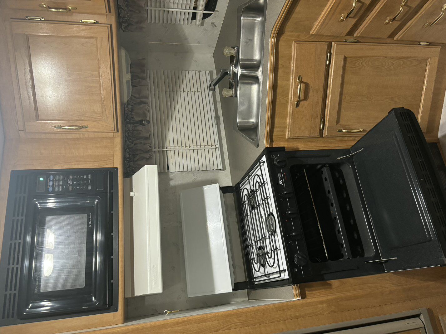 Clean Trailor everything works. weighs about 6,000 lbs so a half ton truck or bigger will pull it. Tows very good, ive had no issues. Features include- -power jack -awning -manual slide out -good tires -storage rack on backside trailor -comes w/ hitch, cover, and storage box -full size fridge -tv -25 or 30 gal water tank, not sure. -water heater -furnace and ac system -surround sound, 4 speakers total -sunlight in bathroom