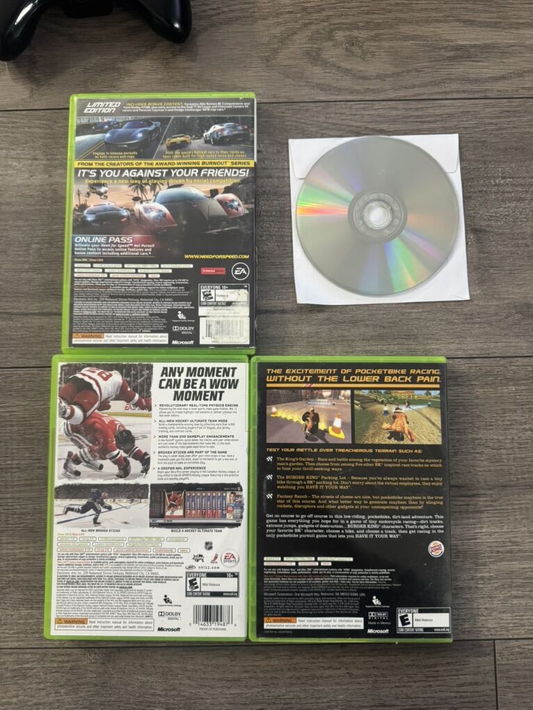 Xbox 360 tested comes with 1 OEM controller and 4 games also comes with all OEM cables