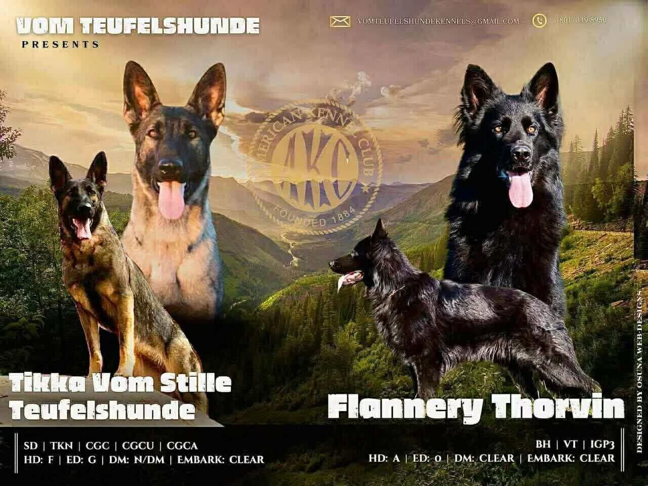 Tikka X Boss: Expected to be born in November 2026. Take home will be January 2027. Will only produce stock coat. Colors will be sable, black/tan, and possibly black/red & solid black.