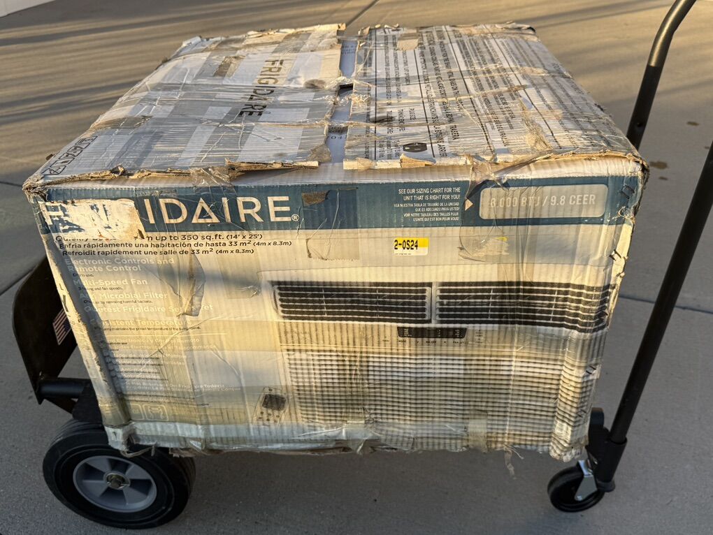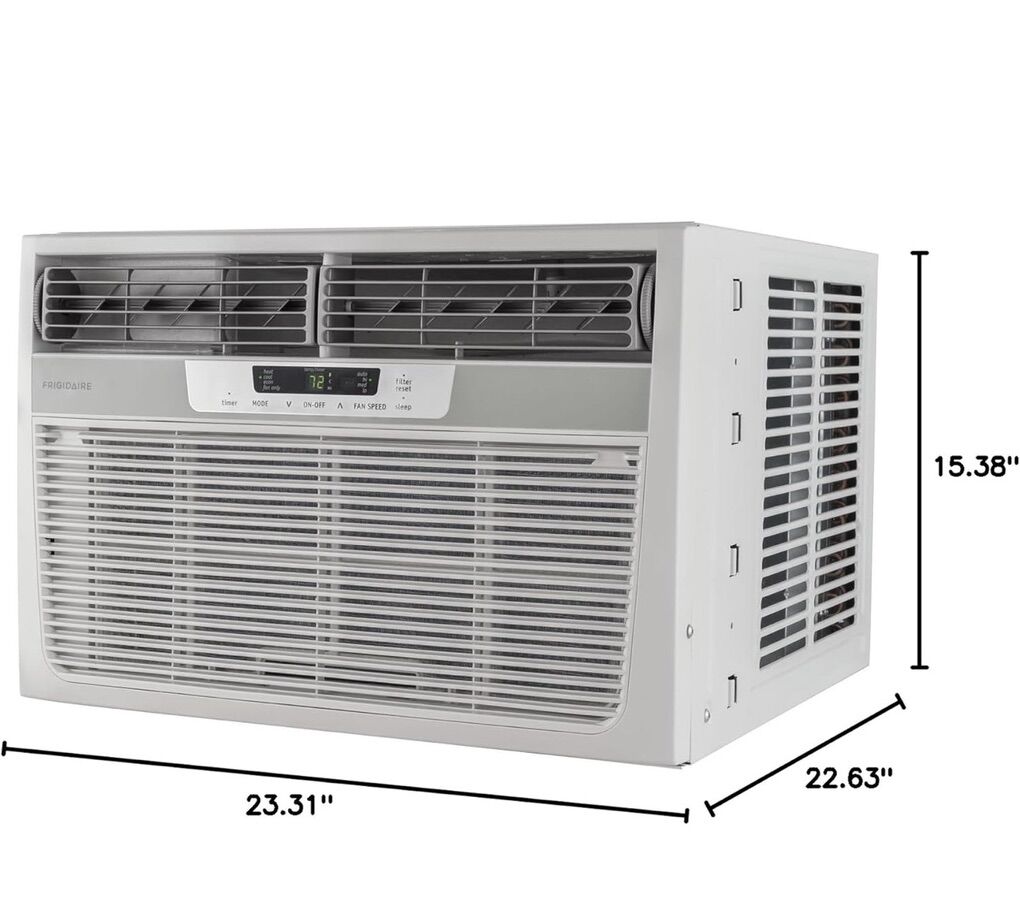 Brand new damaged packaging Stay comfortable year-round with the Frigidaire 8,000 BTU 115-Volt Compact Slide-Out Chassis Air Conditioner and Heat Pump. This versatile unit not only cools your space during the hot summer months but also provides supplemental heating when the temperatures drop. Designed for easy installation in windows, this air conditioner is perfect for rooms up to 350 square feet, making it an ideal choice for apartments, bedrooms, and small living areas.