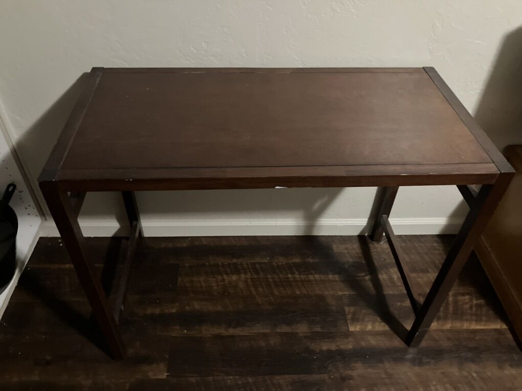 This is a fully wood narrow table. It has a lot of life in it and is a great desk, but it isn’t a fit for my needs. I am asking $40