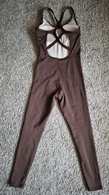 VenmoNew - open bag. Never worn, clean. The Lovesoft Women’s XS Sleeveless Bodysuit Dance Unitard in Chicory Coffee color is a stylish and versatile piece perfect for for yoga or activewear, or casual wear. Made from a comfortable athletic knit blend fabric, 78% polyester and 22% spandex, this one-piece bodysuit features a scoop neck, criss-cross back, and removable lined cup pads for added support. With a fitted leggings style and bodycon fit, this unitard is designed for all seasons and includes features like moisture-wicking and breathable material to keep you comfortable during active movements. The rich brown color adds a modern touch, making it ideal for dance, athleisure, gym, and workout themes.