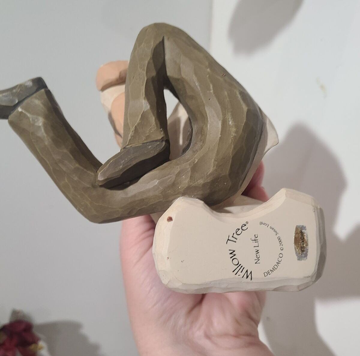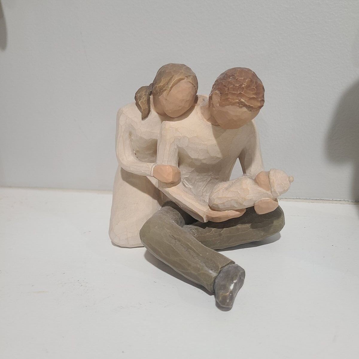 in good condition. A gift to celebrate new beginnings, new babies, new families… and the loving relationships that develop between parent and child, grandparent and child… Willow Tree is a reminder of someone we want to keep close, or a memory we want to touch. Hand-carved figures reveal their expression through body gestures only… a tilt of the head, placement of the hands, a turn of the body. Each piece is designed to be open to interpretation from the viewer. “Willow Tree isn’t so much about the tangible piece. It represents an emotion, or it marks a memory.” —Susan Lordi.
