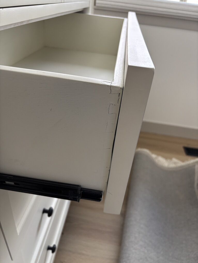 VenmoThis is a very nice solid wood, off-white dresser that is tall. It goes with a lot of different decor and it is heavy duty. A slight blemish on it, which would be easy to fix. I’m also selling a nightstand that matches this on another listing. 54 tall 19 deep 38 wide