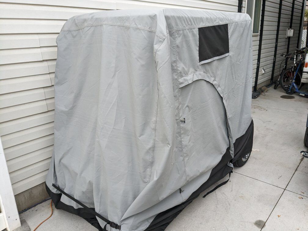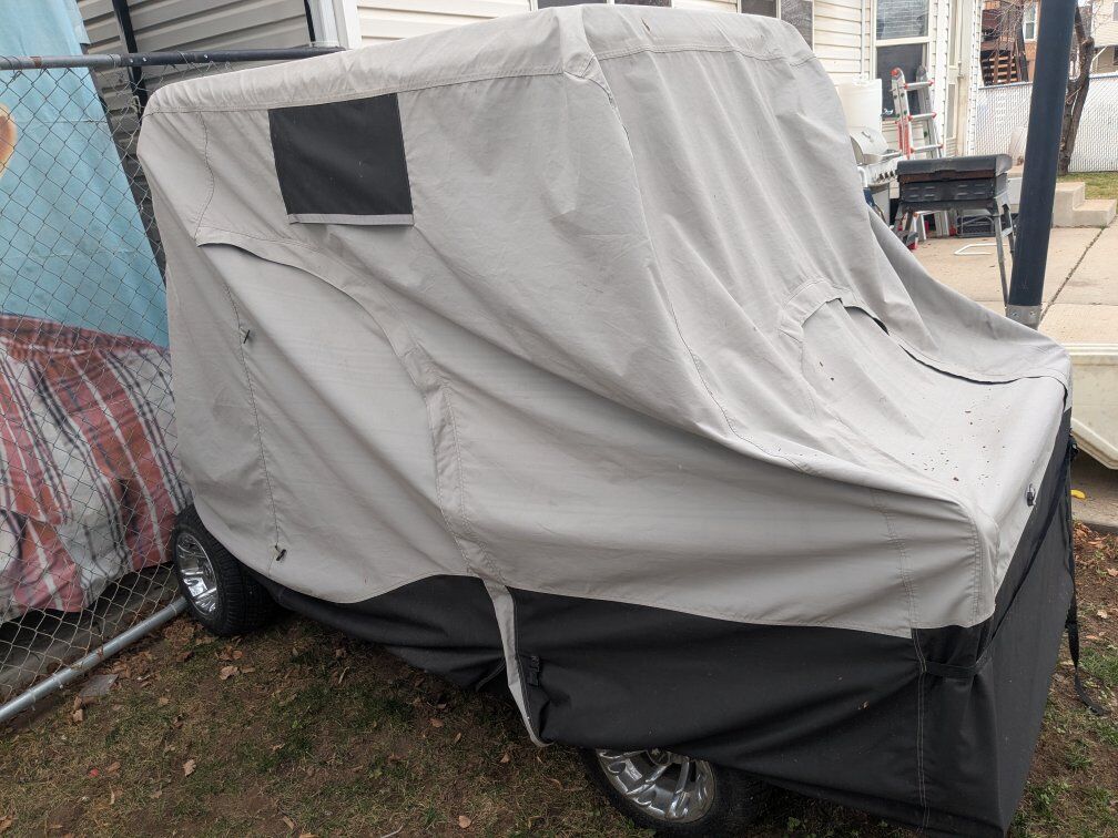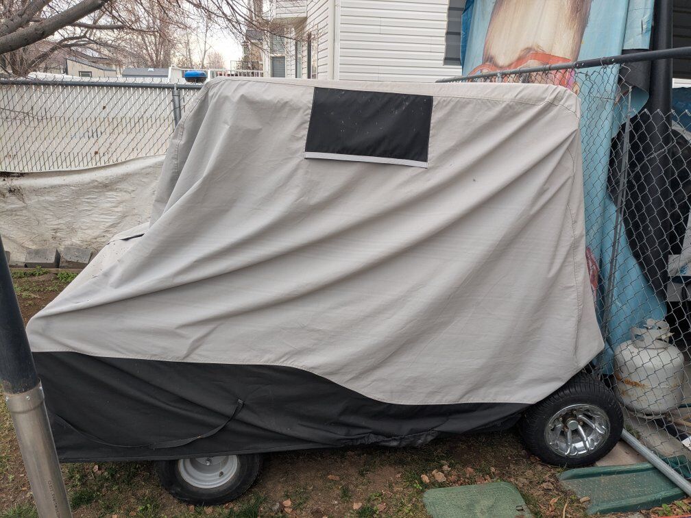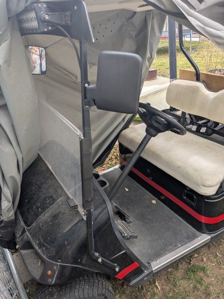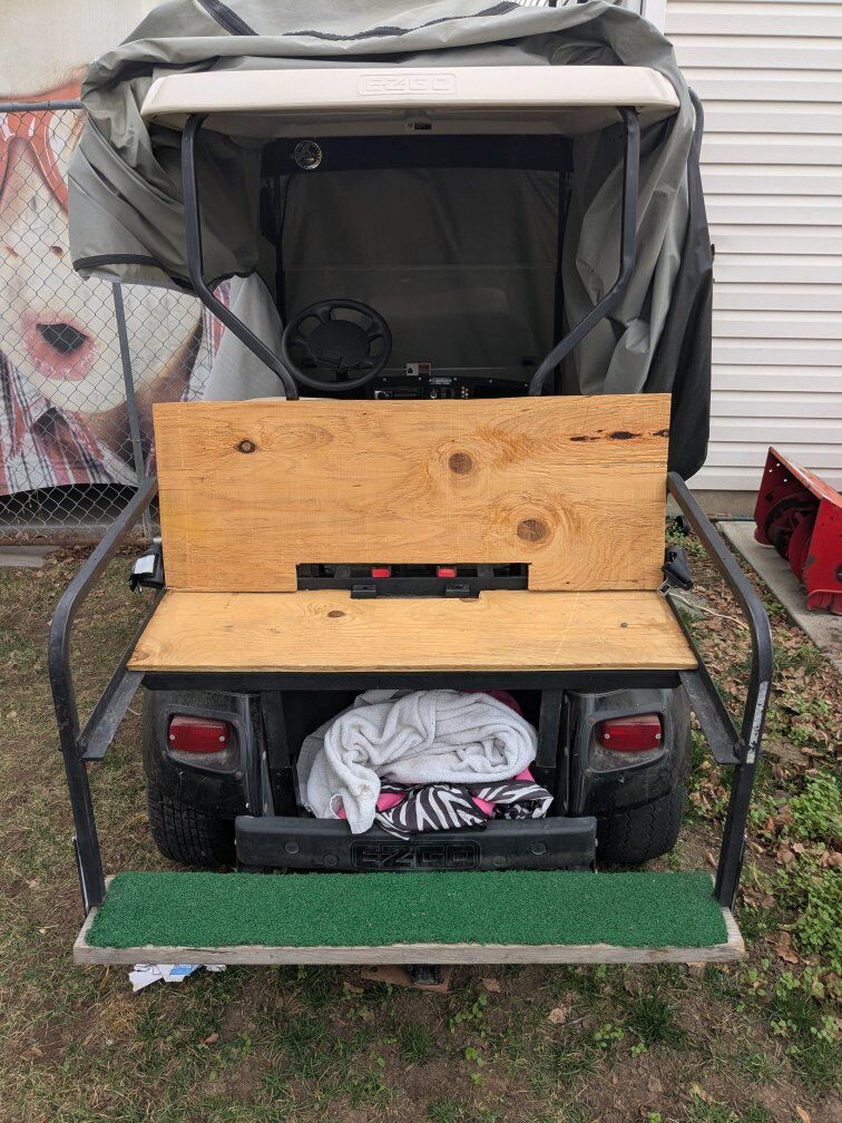 2002 ezgo golf cart 36v lithium street legal (seat belts, lights, title, vin) fitted with rear seat for 4 people.