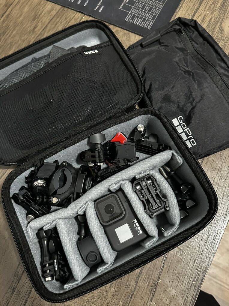 ApplePayBasically brand new, and not a scratch or scuff on it! Only used once or twice. Comes with the hard case, two batteries, SD card, and all the accessories pictured (handlebar mount, motorcycle helmet mount, chest mount, etc). It’s everything you need to get started filming your motorcycle rides or adventures right away.