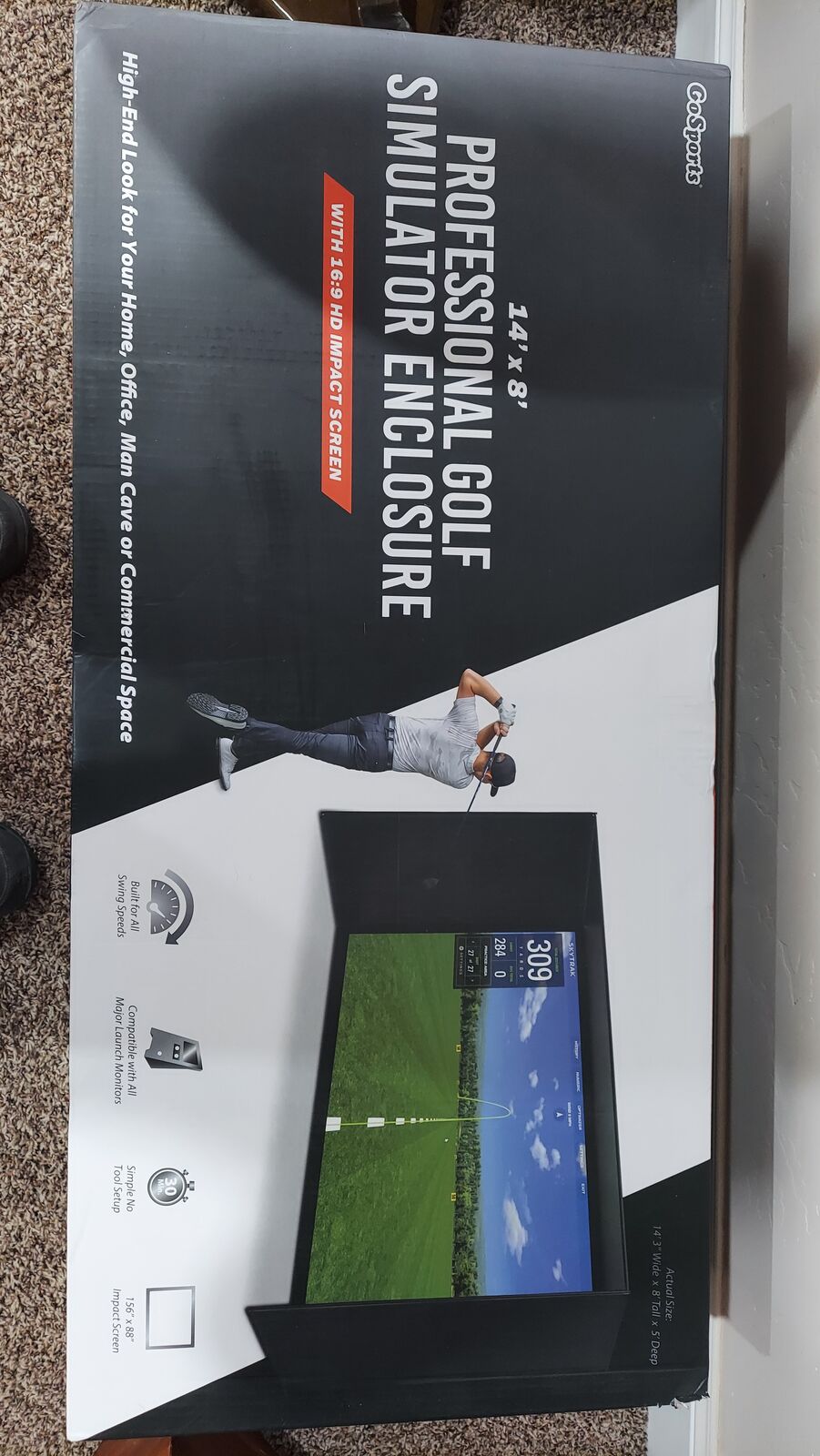 ZelleNew GoSports 14'x8' professional golf simulator enclosure. Does not include launch monitor, projector, or hitting mat. We intended to have a full simulator but decided to scale back.