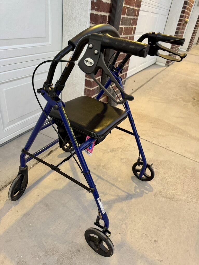 ZelleWalker in very good condition- lightly used recovering from injury, wheels run smoothly , folds flat, lightweight, storage compartment under padded seat. Nice dark blue color. $45.00 or best offer