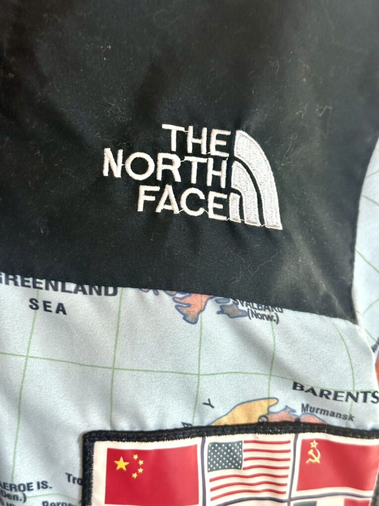 Size Large * The jacket features an all-over, detailed world map graphic print and a black upper section. The design pays homage to the apparel worn by the original TNF Summit team in the 1990s.\
