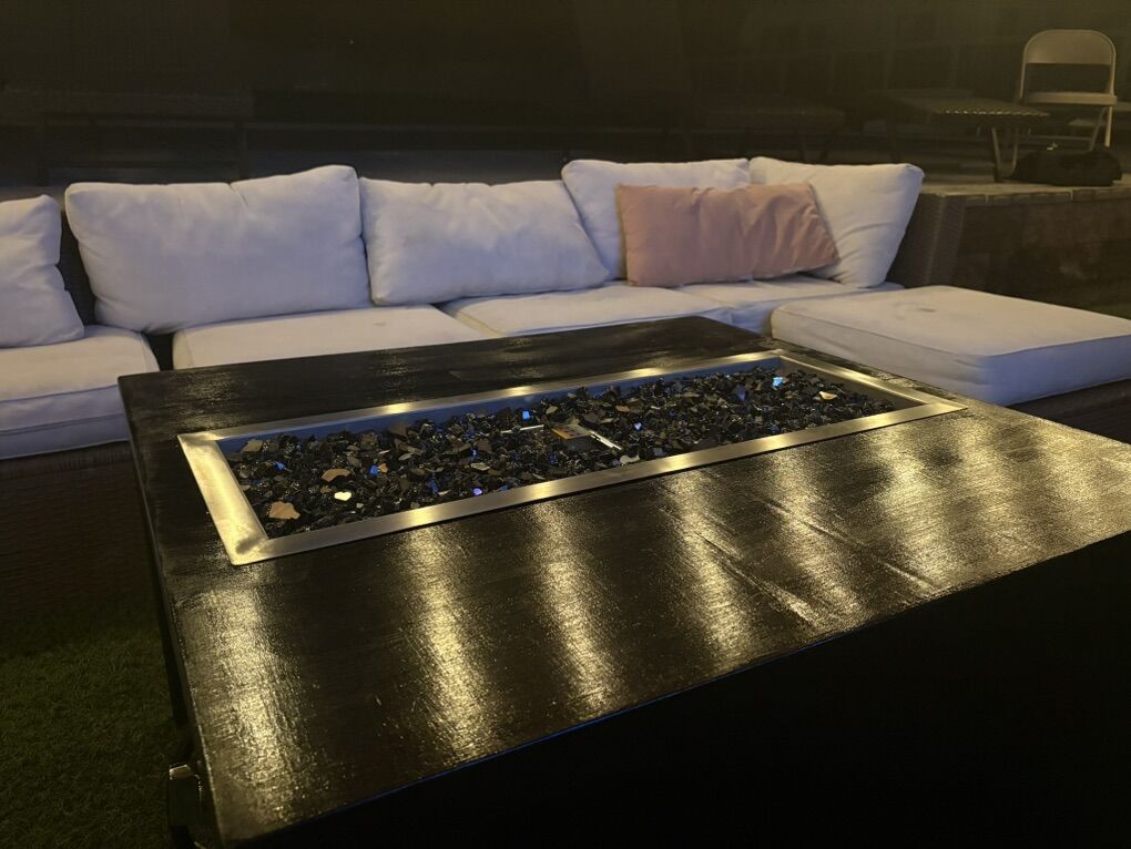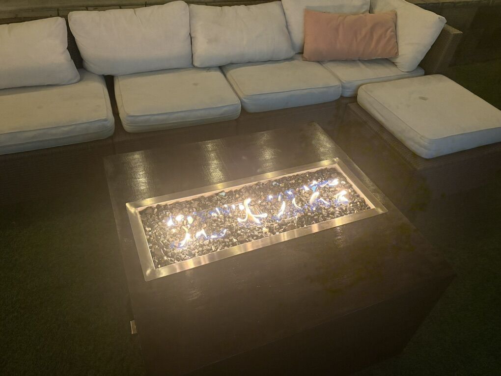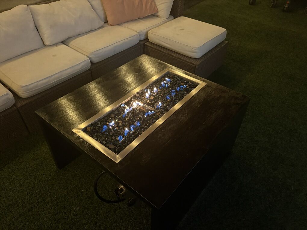 ZelleFire table custom built to your specifications. Size, material, burner. Let me know what you want or the table in the picture is ready to take home today.