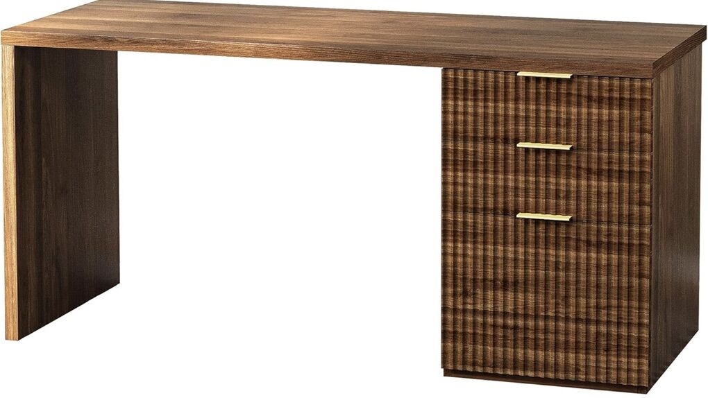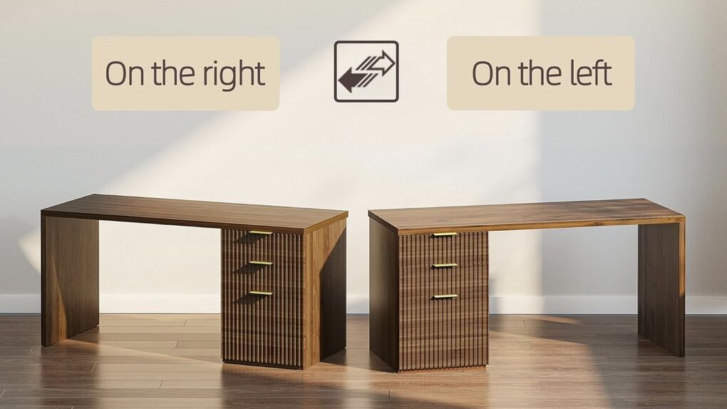 I did only an unboxing for this executive desk with drawers, so it needs to be put together. The 3 drawers can be placed on either side. Great for an office or in a bedroom.